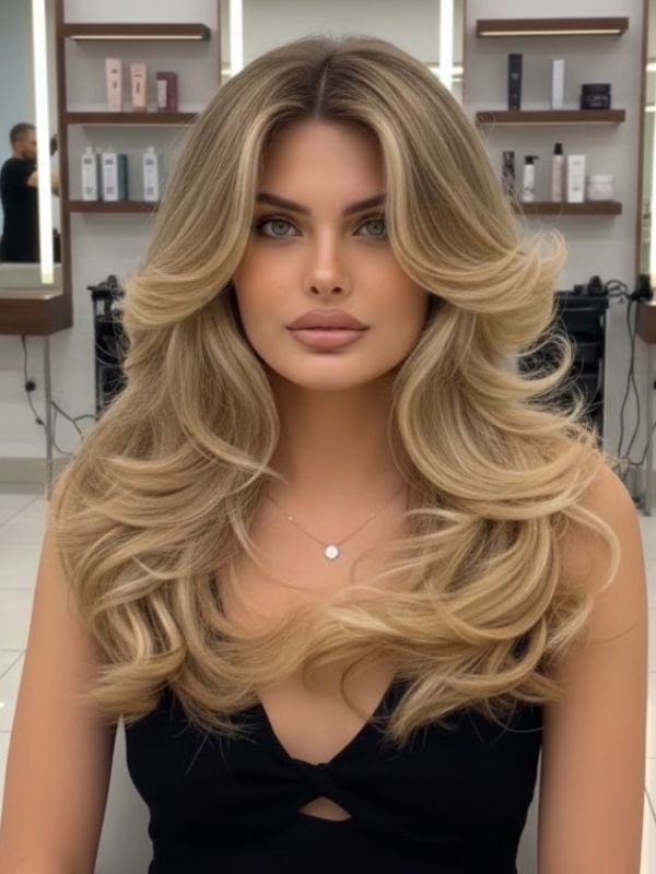 - Top Wings: Shorter layers around the face and crown that create explosive volume (immediate “Botox effect” for your cheekbones).