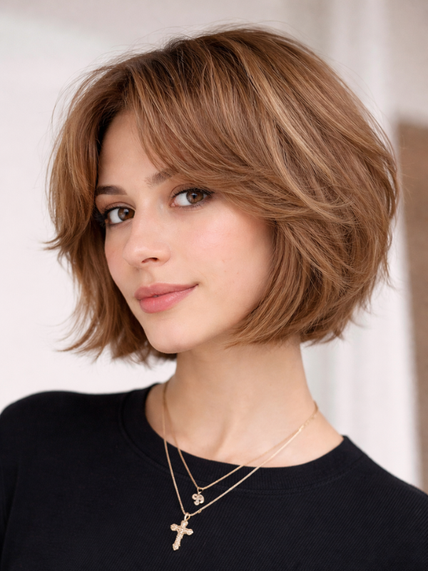 To make the Feathered Bob stand out, the ideal match is freehand lightening (like balayage) or delicate babylights. Color contrasts enhance the three-dimensionality of the feathered ends, giving the impression of hair constantly vibrating and illuminated by the sun.