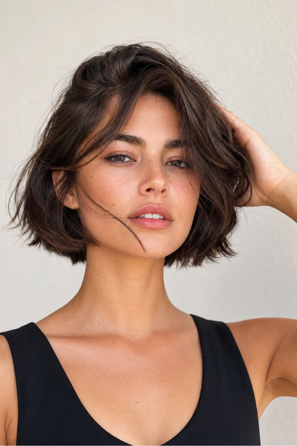 Il Riviera Bob è l’evoluzione raffinata del classico bob alla francese, ma con un volume e una compattezza nettamente superiori (spinto fortemente anche dai look recenti di celeb come Hailey Bieber). Arriva tra la linea della mascella e le clavicole, e si distingue per punte piene (blunt) e un movimento morbido, volutamente non rigido.