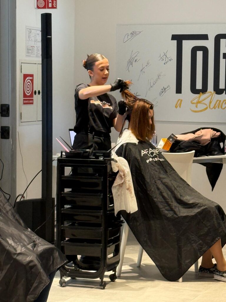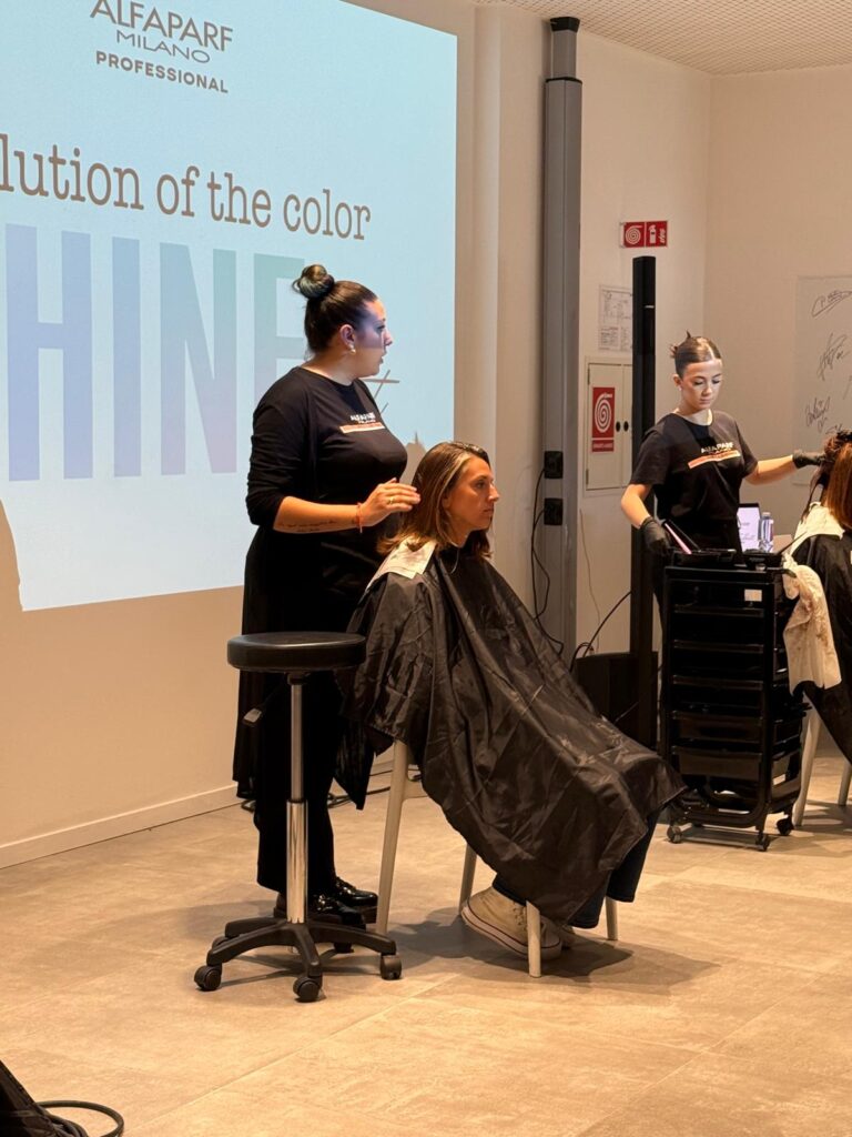 Appena entrata, mi sono trovata davanti a una sala colma: circa 150 parrucchieri arrivati da tutta Italia. Si percepiva subito la curiosità: occhi puntati sul palco, quaderni e telefoni pronti per annotare ogni dettaglio.