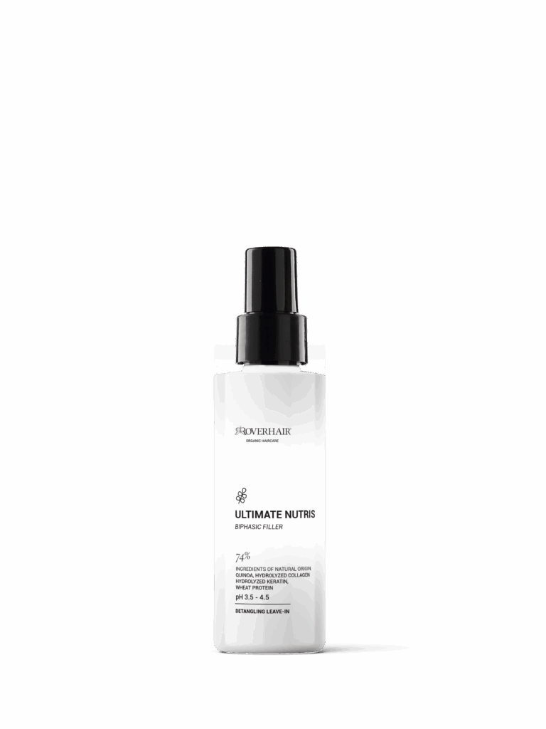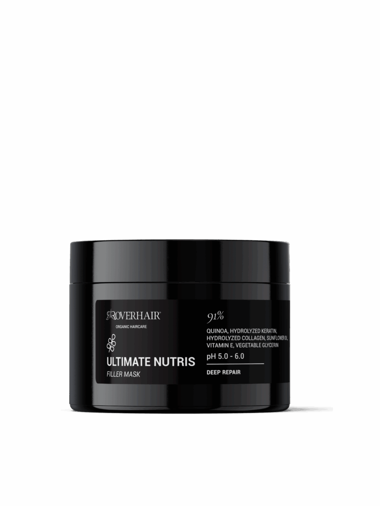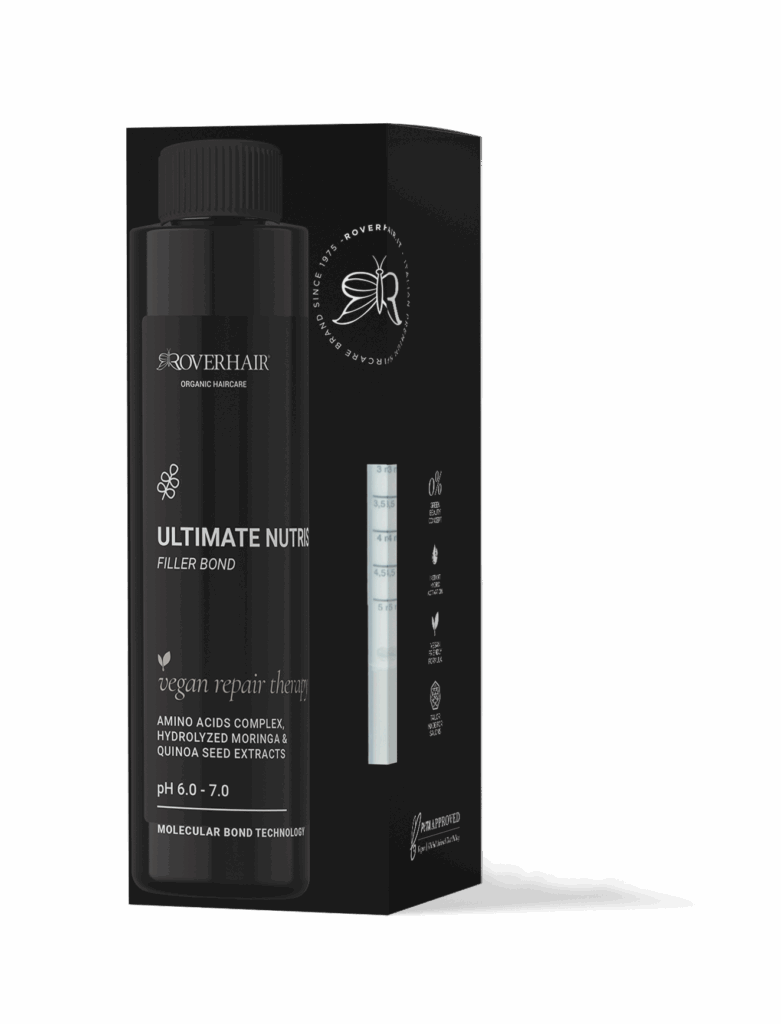 Ultimate Nutris è studiata per rinforzare la fibra capillare dall’interno, riparare i danni e riportare elasticità e lucentezza. Non si tratta solo di “nutrire”, ma di ricostruire davvero. Roverhair mantiene anche qui il suo stile elegante e curato: i pack sono raffinati, pensati per comunicare qualità e professionalità.