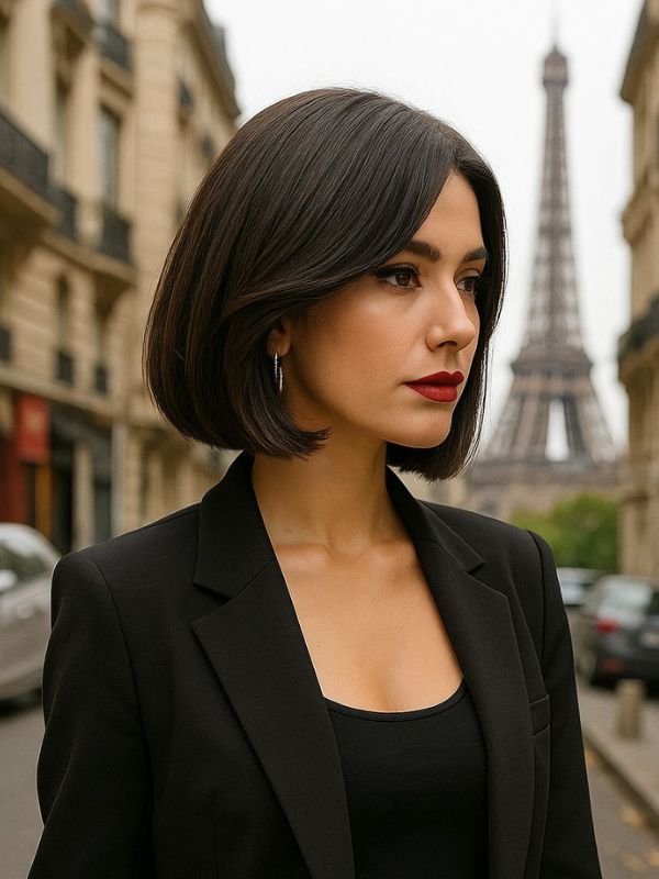 Non è un semplice bob, ma una versione “liquida” e contemporanea, pensata per riflettere la luce e dare l’impressione di capelli sempre sani e curati.