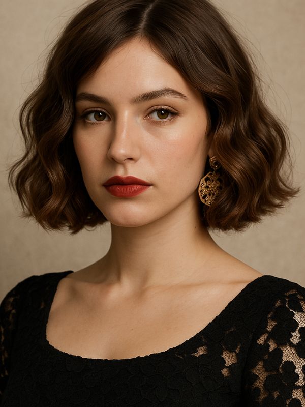- Caschetto ondulato — lunghezza al mento, riga centrale, movimento morbido. Dona eleganza senza eccessi.