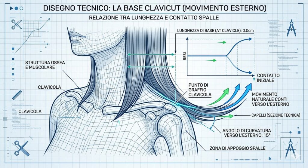 - La Base (Clavicut): La lunghezza deve sfiorare le clavicole. Questo permette ai capelli di appoggiarsi sulle spalle, assecondando il naturale movimento verso l’esterno.